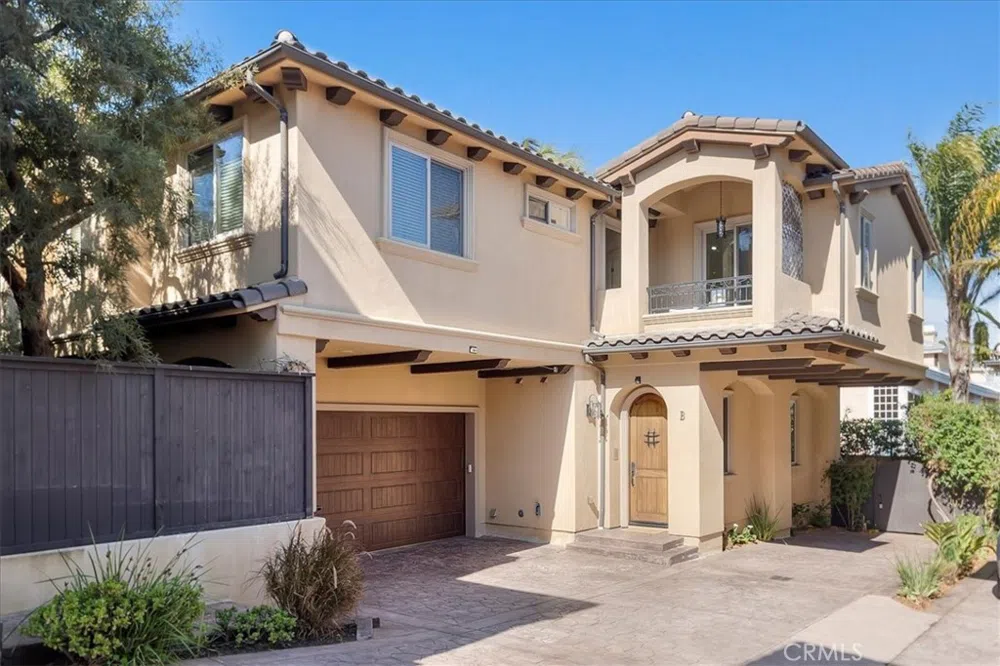 Welcome to this stunning townhome nestled in the highly coveted Jefferson Elementary School District. Built in 2012, this charming rear unit radiates warmth and elegance, boasting an open floor plan with a statement fireplace and direct access to a beautifully landscaped private backyard—perfect for summer BBQs and serene outdoor relaxation. The living area, adorned with travertine-marble floors, flows effortlessly into the dining space and unfolds into a gourmet kitchen. Here, granite countertops and stainless-steel appliances create an ideal setting for hosting memorable gatherings with friends and family. The first floor is completed by a powder room, a laundry closet, and direct access to a two-car garage. Ascend to the upper level to discover four spacious bedrooms, including an oversized Primary Bedroom that serves as a true sanctuary with its vaulted ceilings, expansive walk-in closet, romantic fireplace, and spa-like en suite featuring double sinks, a separate shower, and Jacuzzi tub. The upper level is enhanced by new wide plank vinyl floors throughout, a versatile second living area, and a balcony that bathes the space in natural light. Perfectly situated near local shops, delightful restaurants, and pristine beaches, this home is a haven for relaxation and indulging in life’s finest pleasures.